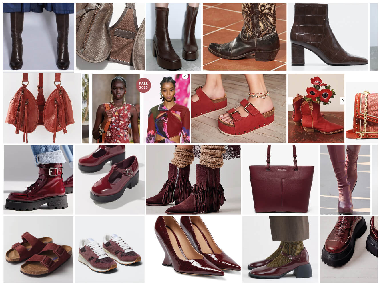 El rojo chili tiñe los básicos esta temporada, transformándose en un guinda, burgundy y en un chocolate rojizo, el chocolate cherry. Vemos también un oliva viejo bien definido y un moro que reemplaza al negro.