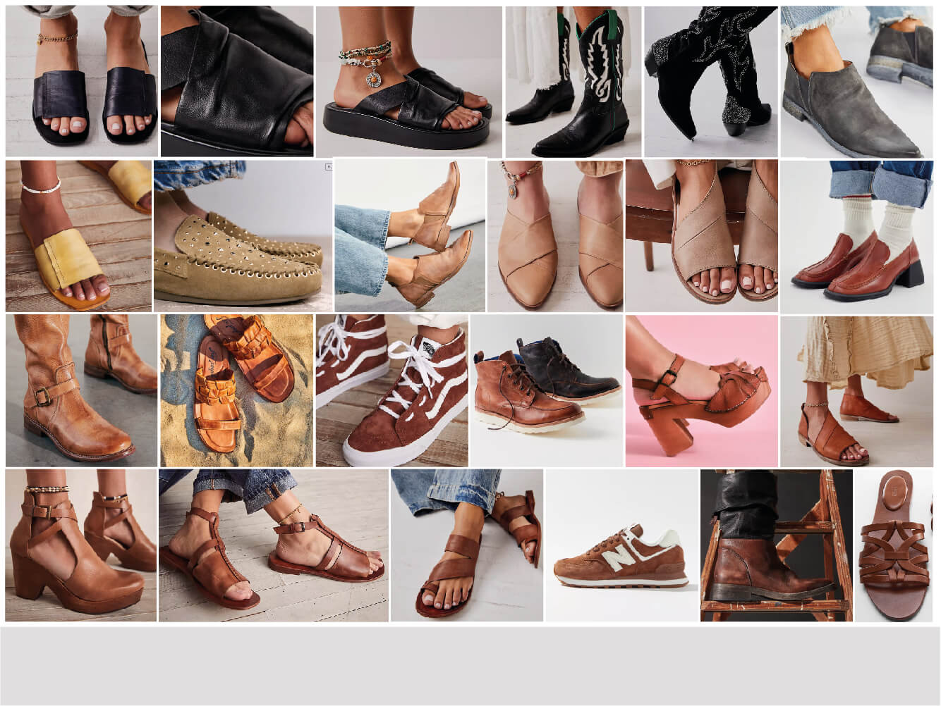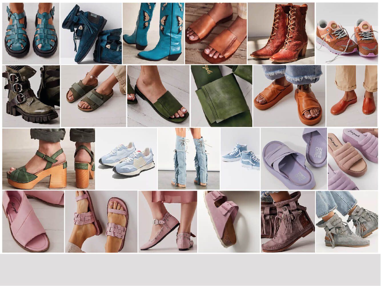 Vintage chic. Colores lavados, lijados, craquelados, arrugados, con efectos de teñidos o con reteñidos. Efectos de nubes, profundidades y transparencias. Cueros vegetales crispados.